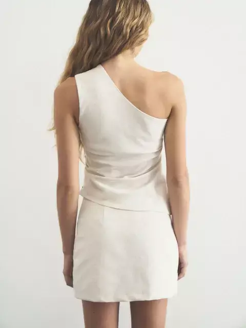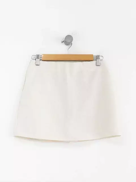 Falda mini con short interno de la misma tela. Cierre en el costado con cremallera oculto en costura.