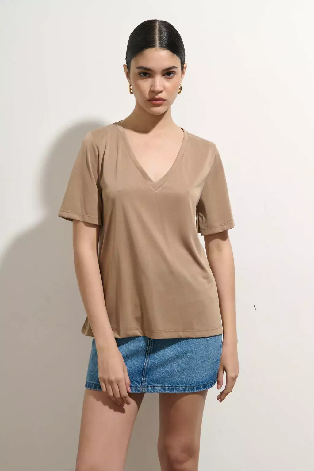 Una remera diseñada para ofrecerte comodidad y versatilidad en cualquier ocasión. Su escote en V aporta un toque de elegancia sutil, mientras que la caída fluida de la tela asegura un ajuste relajado y cómodo durante todo el día.